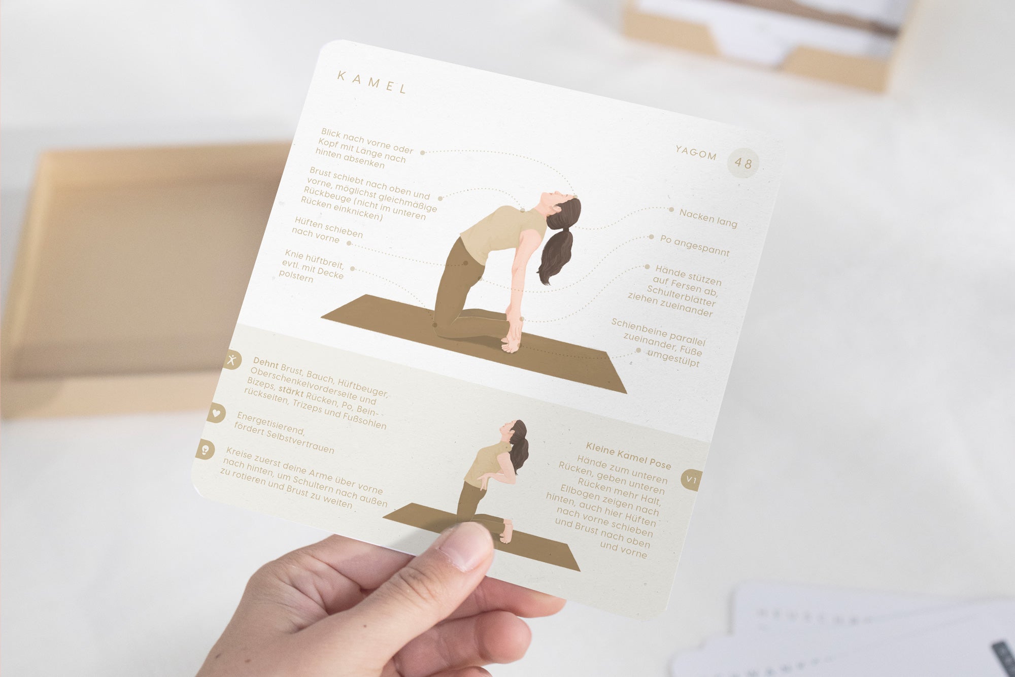 Zum Karten Set erhältst du Zugang zur YAGOM Plattform mit Beispiel Flows, die du als Inspiration nutzen kannst, sowie passende Erklärvideos zu den einzelnen Posen mit weiteren Tipps & Tricks.