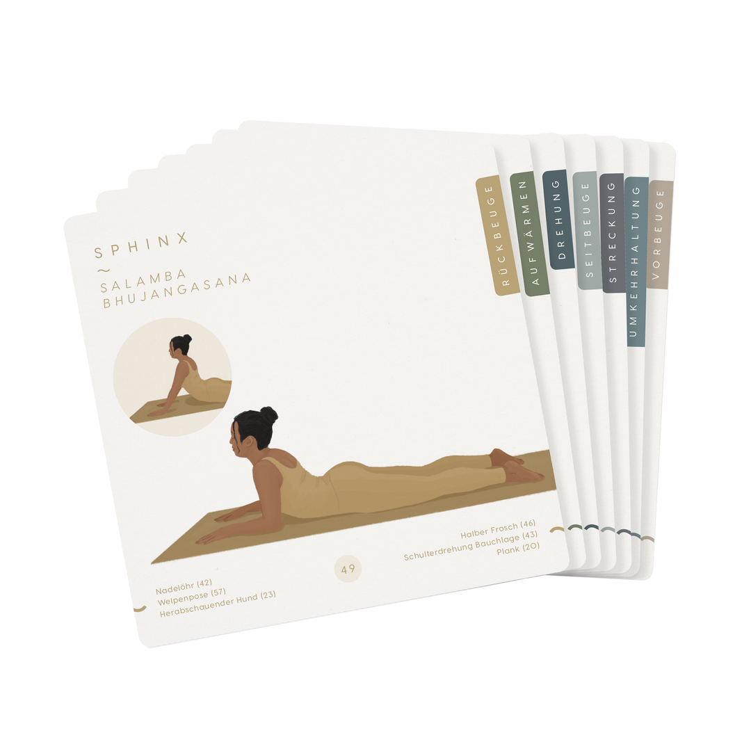 Klar. Gerade für Anfänger sind die Sets eine super Hilfestellung und eine Inspiration für eigene Flows, auch ohne Yoga-Lehrer Ausbildung. Aber auch für erfahrene Yogis können die Sets eine super Hilfestellung sein, um spielerisch und visuell neue Flows zu kreieren.