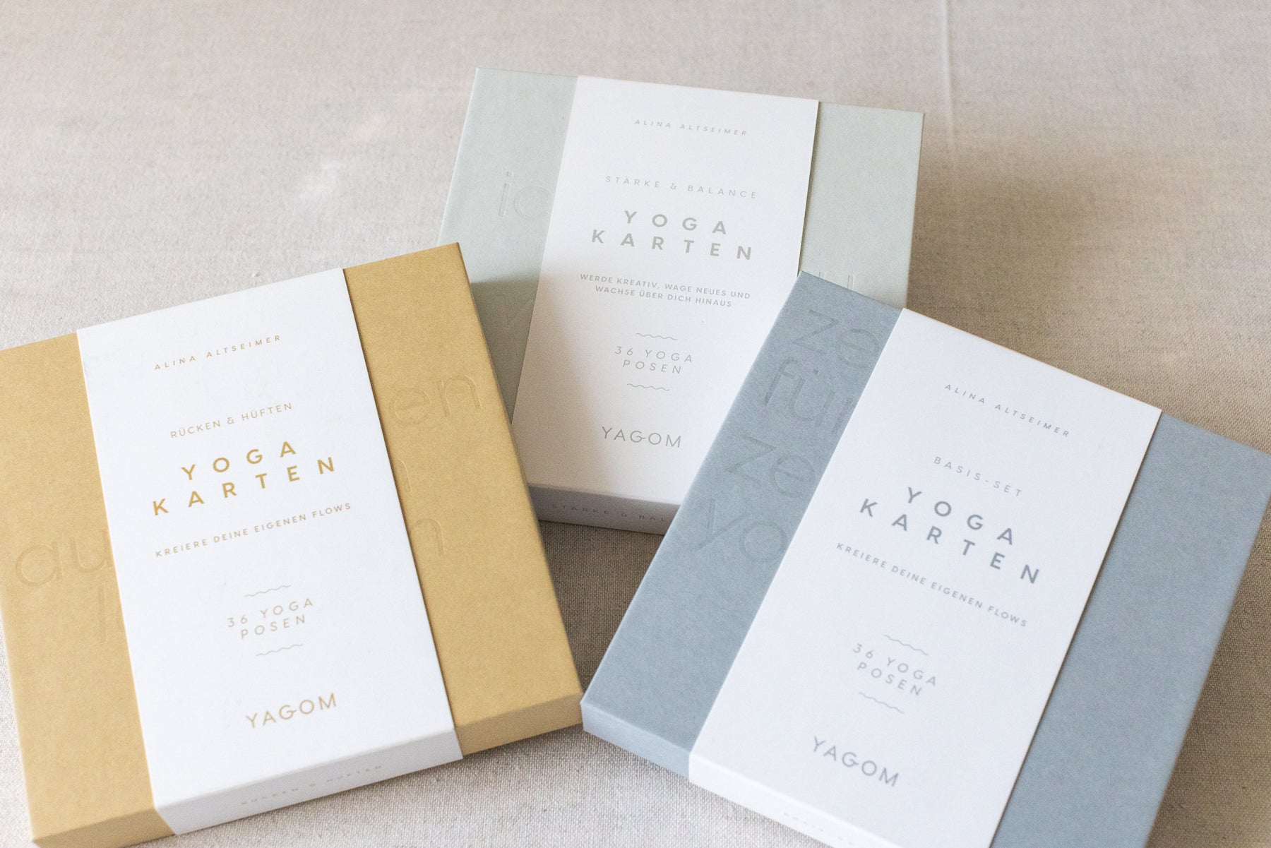 Mit dem Yoga Karten trio erhältst du alle drei Yagom Yoga Karten Sets - und damit die volle Vielfalt für deine Praxis für zu Hause.